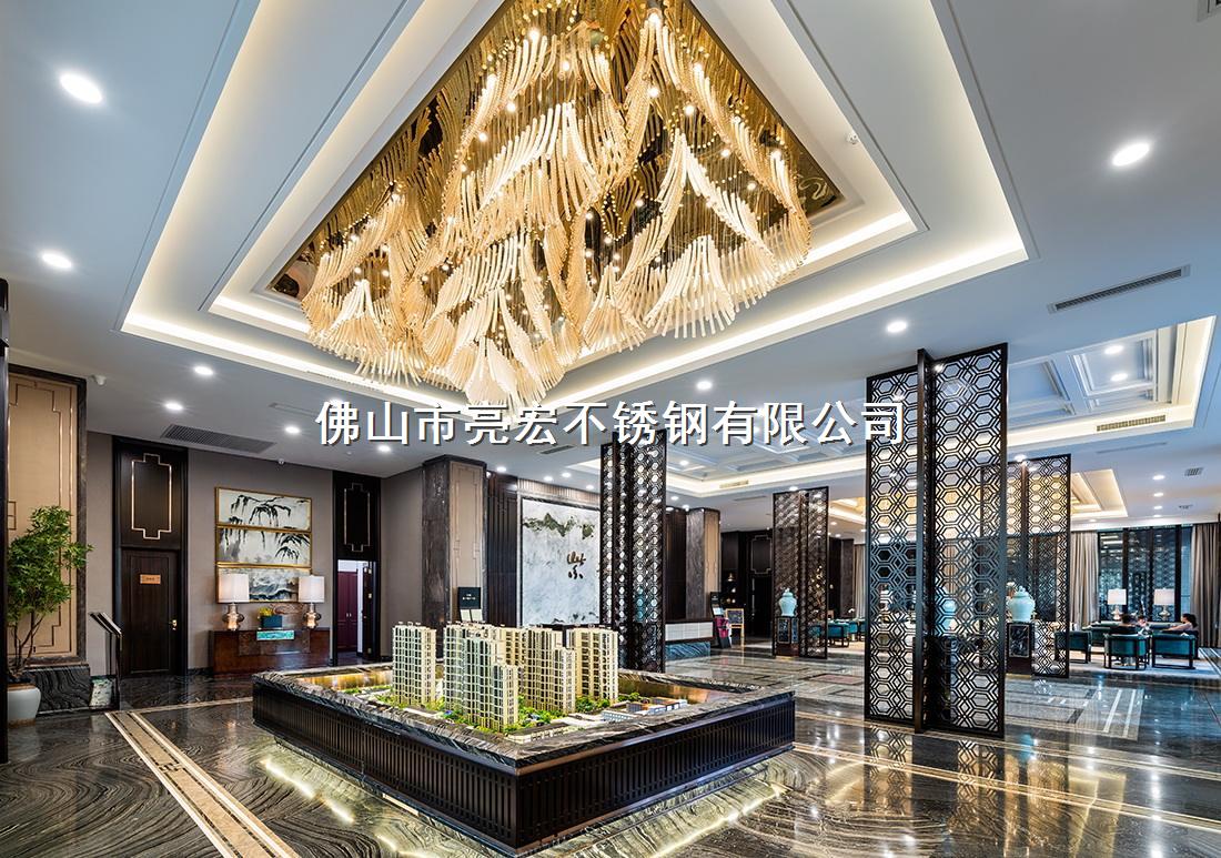 该项目位于山西省太原市,为万科旗下一个售楼中心,其装修采用不锈钢装饰条、不锈钢包边、沙盘采用不锈钢底座,大厅内使用亮宏不锈钢屏风,使大厅内空间进行有效区分,同时保证了大厅内的视线和美观度。